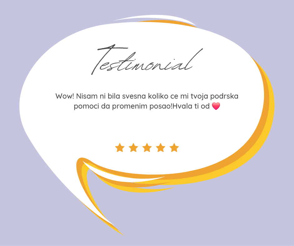 Inspiracija direktno u tvoj inbox: Svake nedelje delim motivacione priče, savete i strategije koje će te osnažiti i podstaći na akciju u tvojoj karijeri.